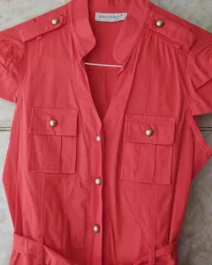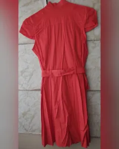 Vestido casual liguero, color coral, tipo camisa, con manga corta. Excelente estado sin usar