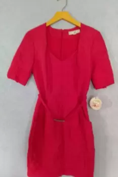 Lindo vestido coral, Manga 3/4 Tela corrugada , con cinturon y bolsas laterales, talla-4Marca for Impulse