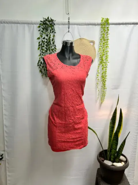 Vestido coral SAHARA. Bonito vestido corto, de encaje, color coral, 👚👗🌈marca SÁHARA, talla 13, ☘️Medidas:hombros 38, axilas 49, largo 82 ☘️Código: A015💟Incluye gratis Regalo Sorpresa💟