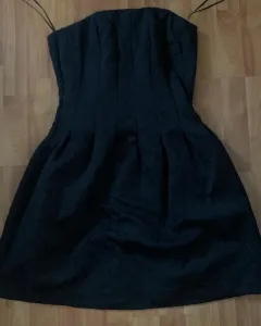 Vestido corset. Es un vestido color azul marino con detalle de encaje, y plieges en la falta y la parte de arriba como corset