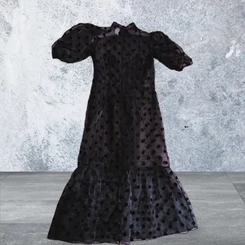 El vestido más precioso en la vida, hecho con organza fina, puntitos de tela aterciopelada, y no olvides este hermoso vestido trae un fondo para que no pierdas el fit