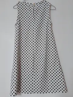 Vestido corto, sin mangas, color blanco, y lunares color negreo, casual, marca SFERA casual , T S
