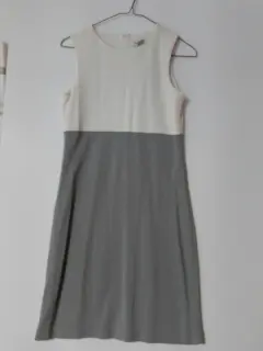 Vestido corto. Vestido corto elegante, sin mangas, beige con gris , T 0 , entalla muy bonito , es pequeño pero con un corte hermoso