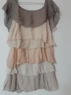 Vestido corto. Vestido elegante para evento de día, seda, mara Mango , gris y palo de rosa, con capas muy vaporoso, excelente caida