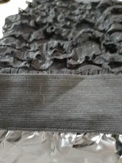Vestido elegante, arriba negro drapeado, elástico, falda de tafeta color gris plata, cómodo, de cintura elástica, práctico y a la vez muy vestidor