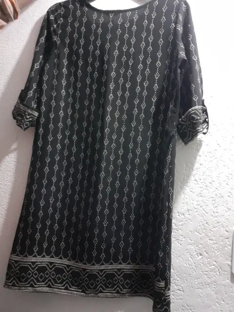 Vestido de tela delgada, corto, talla M, color negro, cuello redondo, sin costuras abiertas ni modificaciones