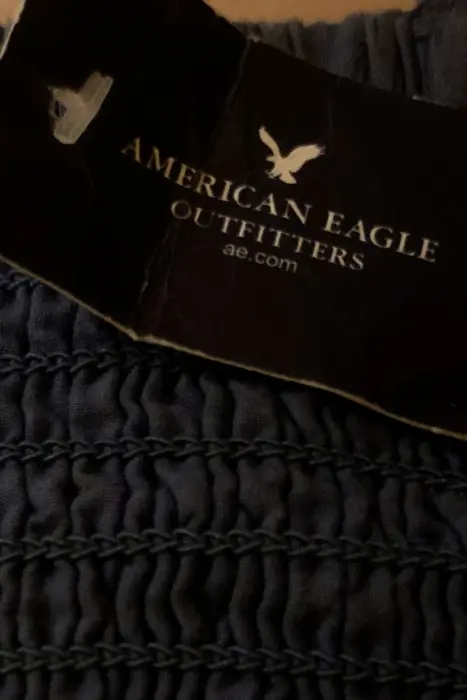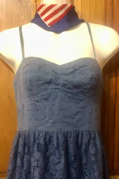 Vestido corto. Vestido corto azul marino con dos tipos de estampados, de puntos en el top y calado en la falda. Talla chica, de la marca American Eagle Outfitters. Ligero ideal para verano, playas o lugares calurosos. 100% algodón. *Pañoleta no incluida.