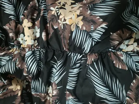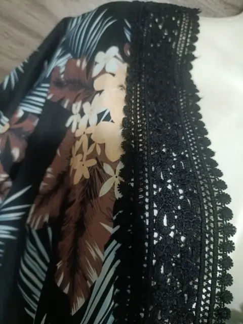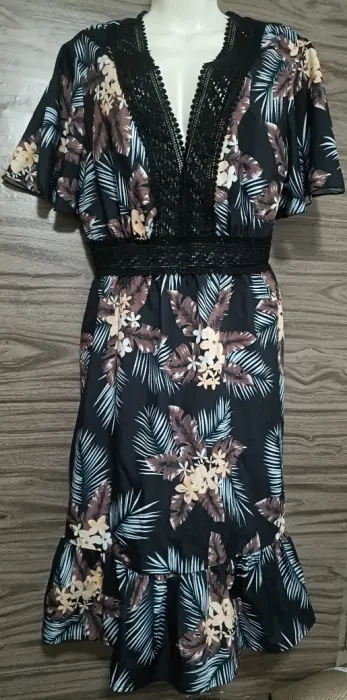Vestido nuevo sin etiqueta en la parte de enfrente tiene encaje, la tela no estira de la parte de atrás tiene un elástico para que ajuste a 2XL.La tela es poliéster las medidas son de hombro a hombro 49 cm, de axila a axila 61cm y de largo 103cm