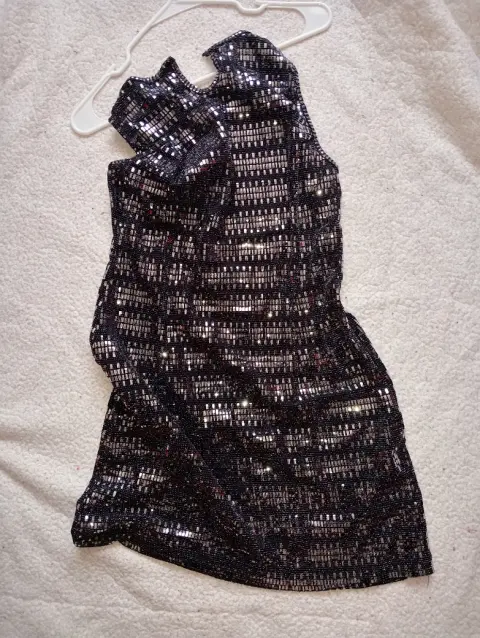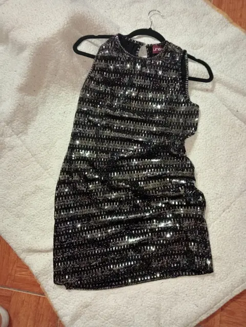 Vestido corto. Vestido negro plateado broche el la parte de atrás corto muy bonito si adquieres te verás hermosa