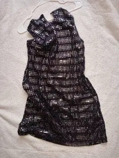 Vestido negro plateado broche el la parte de atrás corto muy bonito si adquieres te verás hermosa
