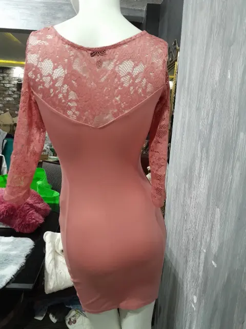 Hermoso vestido corto casual de licra sin detalle manga larga cuello redondo