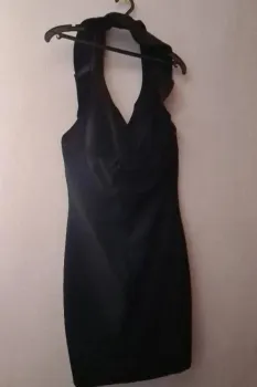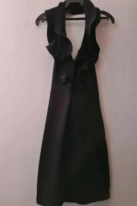 Vestido negro, corto, ideal para fiestas de jardín. Talla L. Medidas -- pecho: 36 cm. Cintura 39 cm, largo 66 cm.