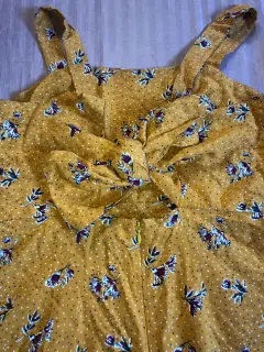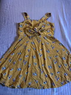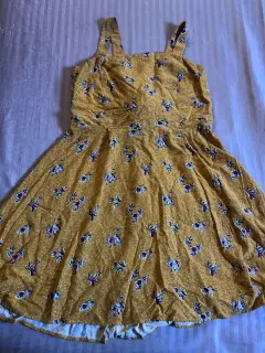 Vestido 👗 corto. Vestido corto color mostaza con flores 🌹 muy lindo y fresco es abierto de la espalda