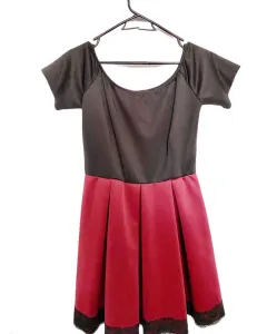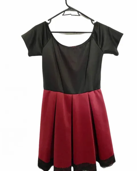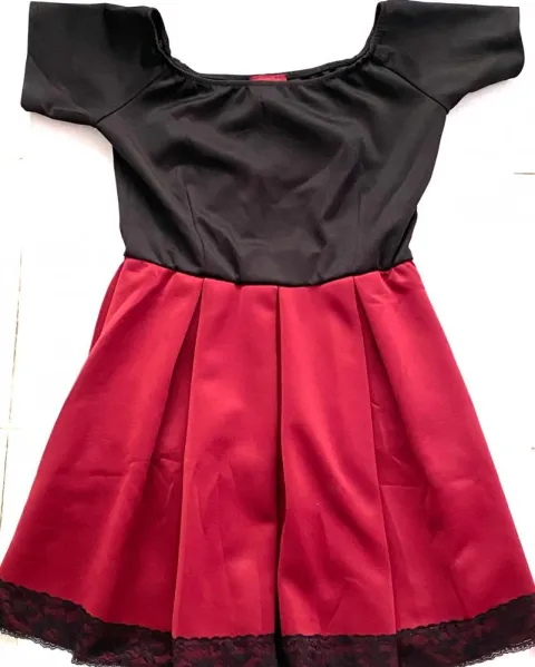 Vestido corto con tablas negro con vinos detalle de encaje al final de la falda, la tela estira un poco, es talla L pero le queda a una M