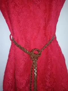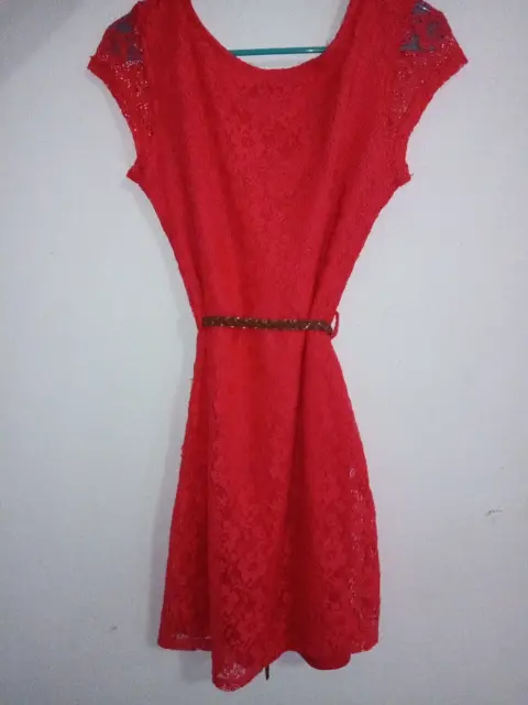 Vestido corto de bonito encaje con forro en su interior y su cinturón trenzado que le hace lucir muy elegante
