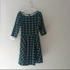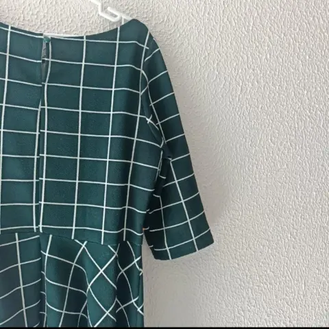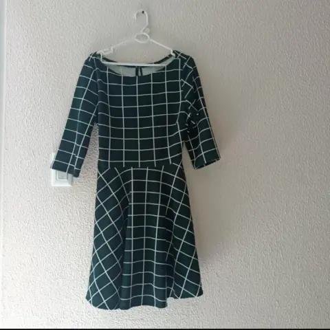 Vestido corto a cuadros. Es un vestido casual , manga tres cuartos, cómodo y cuello tipo barco o circular.