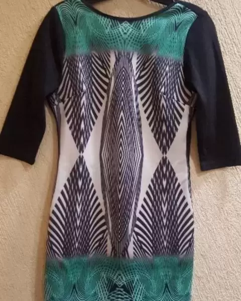 Vestido corto Andrea⚠️2❌300⚠️. Lindo vestido corto de algodón stretch, multicolor de enfrente y negro atrás, de manga 3/4 y con escote discreto en espalda.Marca Andrea pero le corté la etiquetaporque me raspaba* Talla M**Producto lavado*Sin detalles**Calificación: 10**GRACIAS POR TU PREFERENCIA*