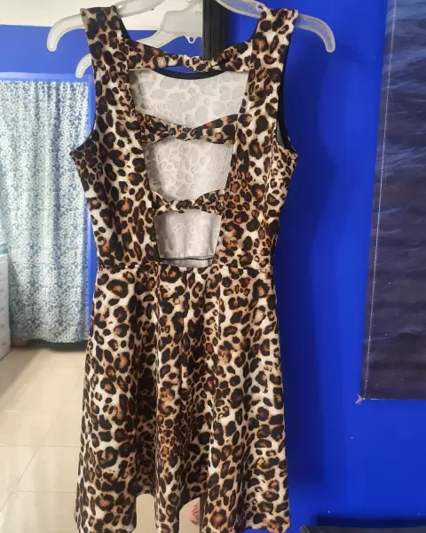 Vestido corto animal print con falda volada, detalles en la espalda , muy favorecedor