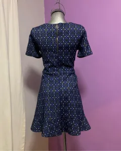 Vestido corto azul. Hermoso vestido azul con gris y negro marca Sfera talla chica, también va a una mediana.Sus medidas son: 68cm de largo, 43cm de axila a axila y 76cm de cintura.