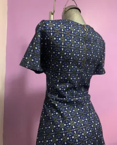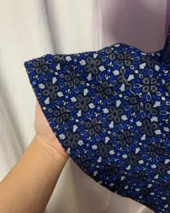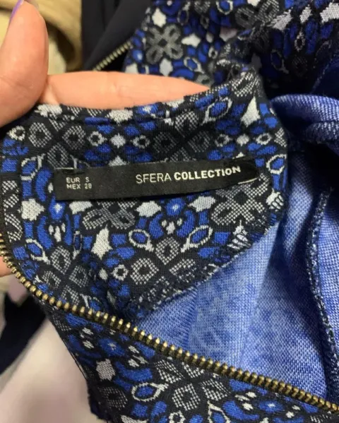 Hermoso vestido azul con gris y negro marca Sfera talla chica, también va a una mediana.Sus medidas son: 68cm de largo, 43cm de axila a axila y 76cm de cintura.