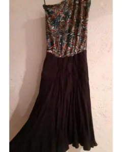 Tela estrech, de un solo hombro, largo aproximadamente a la rodilla.