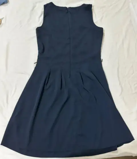 Vestido corto Marca Tommy Hilfiger, color Azul marino, no tiene fondo, incluye un listón de la misma tela para colocar en la cintura, tiene piedreria en la parte del pecho pero se le cayeron algunos realmente casi no se nota.