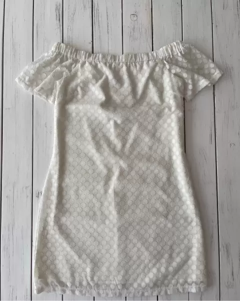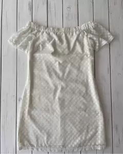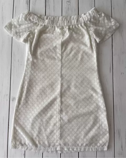Vestido corto ivory con forro, a los hombros. Trae un cierre invisible lateral. Hecho en poliéster.Talla: XS exactamente a la tallaMedidas: 41 cm axila 38 cm de cintura y 72 cm largo. No estira y está justo a la talla.