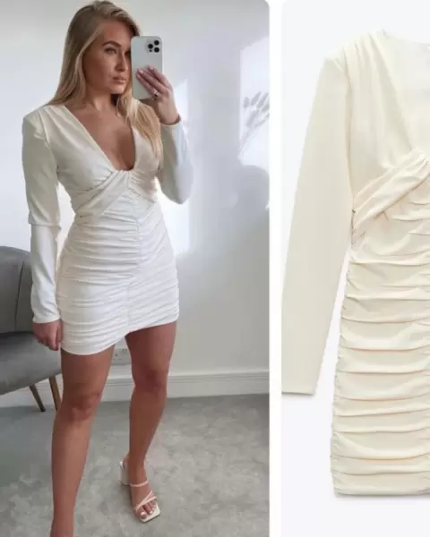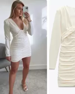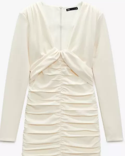 VESTIDO CORTO BLANCO DRAPEADO ZARA