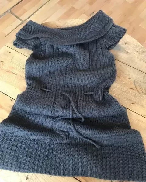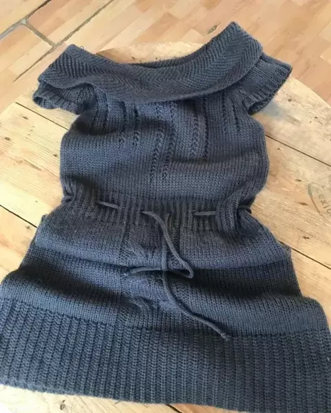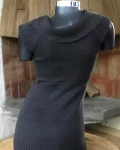 Vestido corto cardigan. Precioso vestido tejido de punto es talla mediana pero viene reducido si podría quedar a las dos tallas lo puedes combinar con zapato formal botas largas botines está en perfecto estado en la usé como tres veces nada más