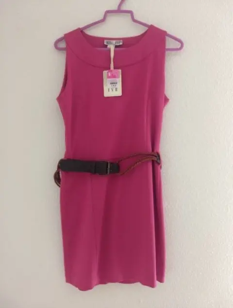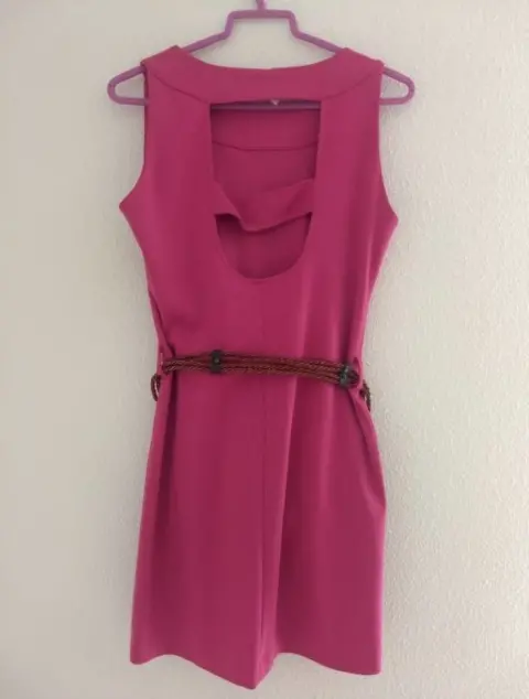 Vestido corto, con cinturón. Color rosa fucsia.Sin mangas.Nuevo, con etiqueta.