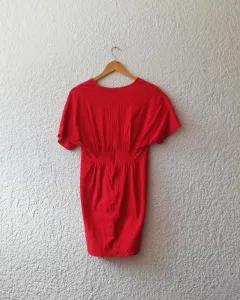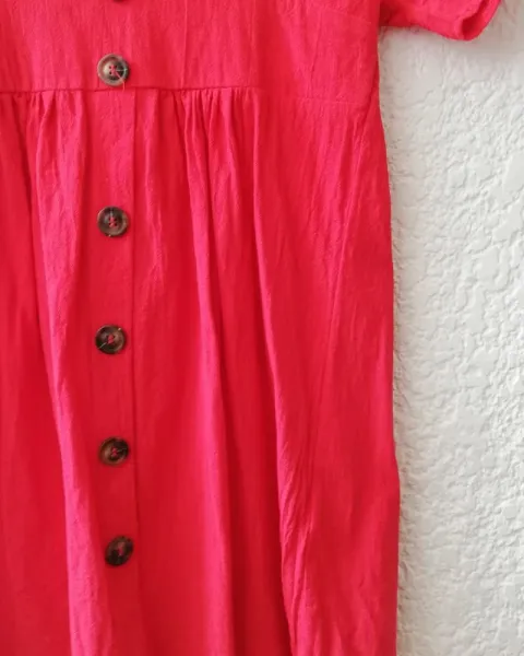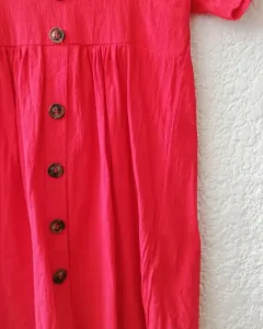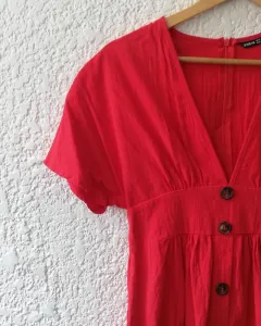 Vestido corto color rojo. Vestido corto, con cuello en v.Cierre por la parte de atrás, botones de adorno al frente.PoliésterHombro a hombro: 42 cmCintura: 76 cmPecho: 94 cm Largo: 78cm
