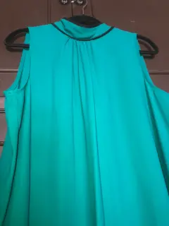 Hermoso mini-vestido sin mangas y con tiras para moño en la parte de espalda, es una tela muy suave y fresca. Medidas de axila a axila 58cm, largo 86cm, cintura 61cm, no tiene ningún detalle solo se usó una vez