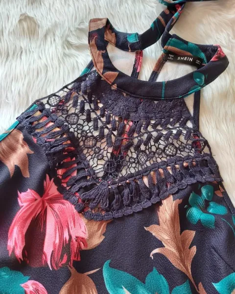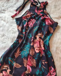 Hermoso vestido cuello halter floralSolo se uso 1 vez esta casi nuevoSin detallesEs corto no queda tan justo