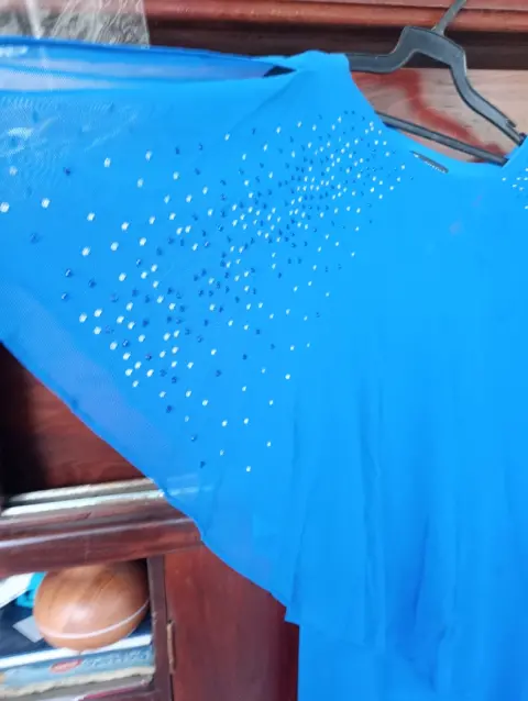 Vestido corto de fiesta. Vestido de fiesta talla mediana corto a la rodilla con capa con brillos tela de chifon