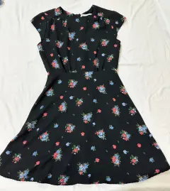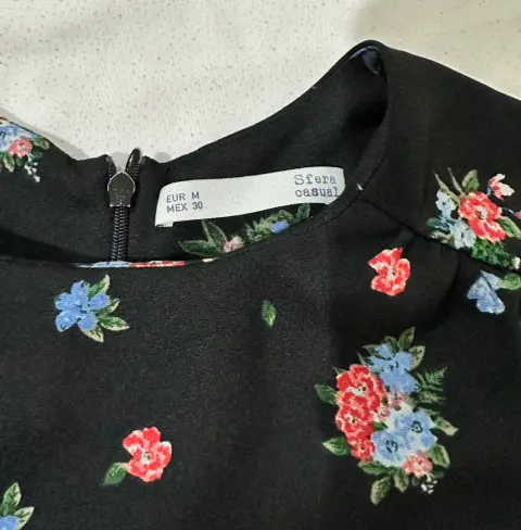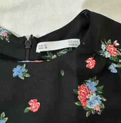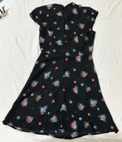 Vestido corto de flores. Vestido corto Negro con flores, Tela delgada sin fondo, con cierre largo en la espalda marca Sfera
