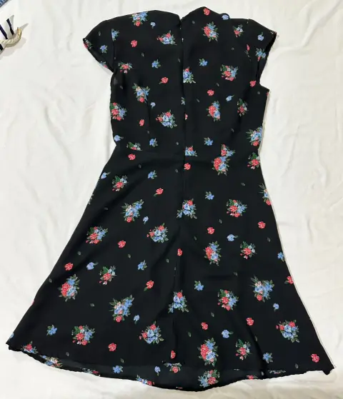 Vestido corto Negro con flores, Tela delgada sin fondo, con cierre largo en la espalda marca Sfera