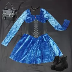 Vestido corto de terciopelo azúl brillante