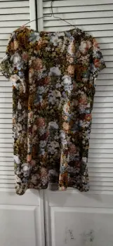 Vestido corto en color café. Vestido casual, corto, color café, estampado en flores de la misma gama de color, manga corta y tela muy fresca