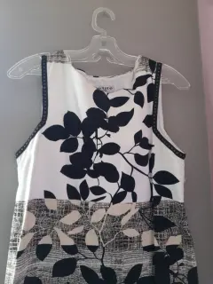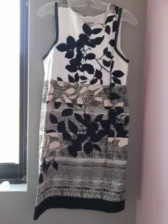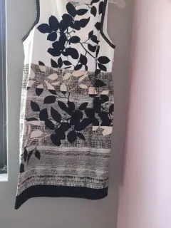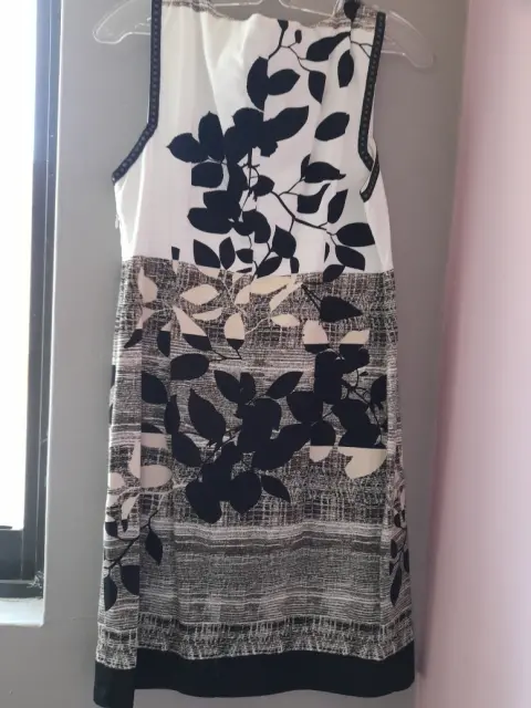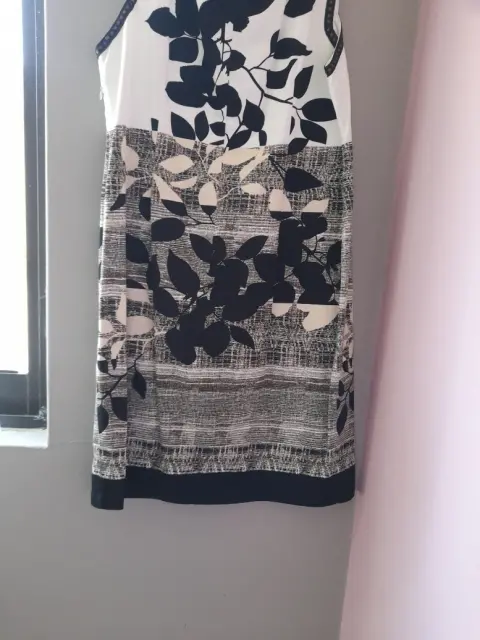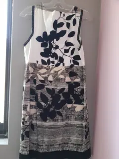 Vestido corto en talla mediana. Elegante vestido con apl7caciones en hojas muy elegante corto con forro