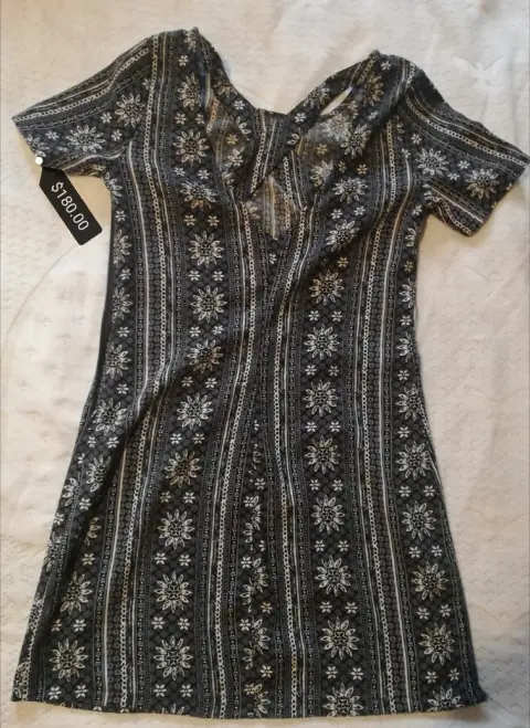 VESTIDO CORTO ESTAMPADO. Vestido casual, con manga corta, estampado, escote discreto en espalda, talla pequeña, se amolda perfectamente a tu cuerpo.