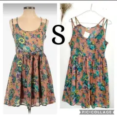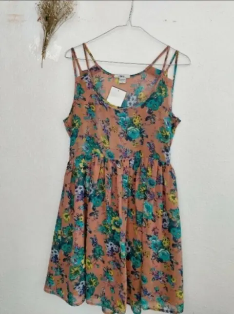 Vestido corto floral. Es un encanto de vestido! Simplemente hermoso, delicado, tela tipo seda, 100% polyester, (cheTiene forro.No tiene strech, fiel a su talla. Tiene cierre al costado.Axila a axila: 41 cm,Largo: 78 cmSin detalles!Marca Bar III