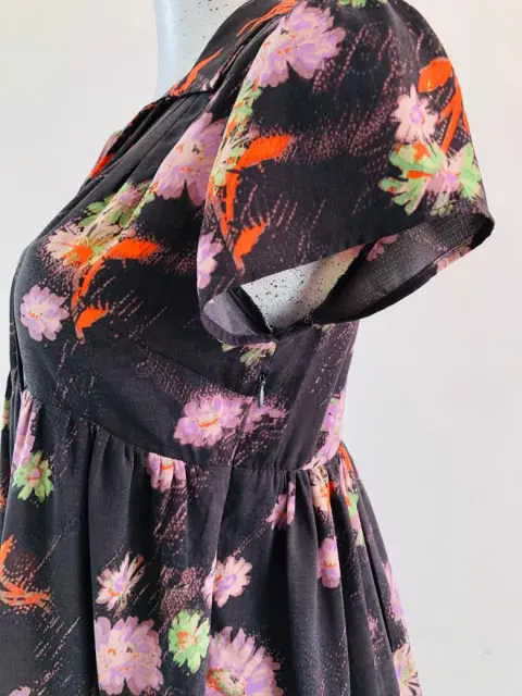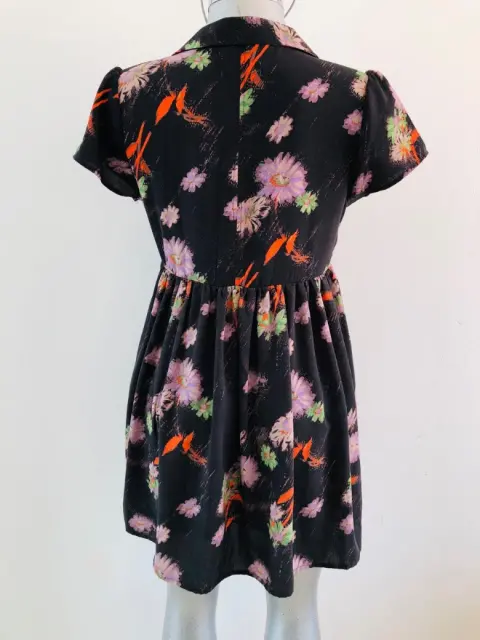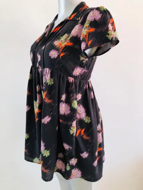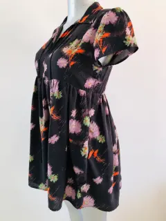 Vestido corto floreado. Hermoso vestido floreado. Manga corta. Cuello V profundo. Medida axila a axila 48 cm. Largo 80 cm. Talla M