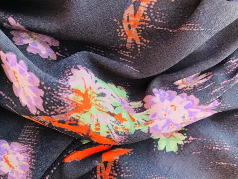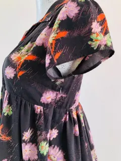 Hermoso vestido floreado. Manga corta. Cuello V profundo. Medida axila a axila 48 cm. Largo 80 cm. Talla M