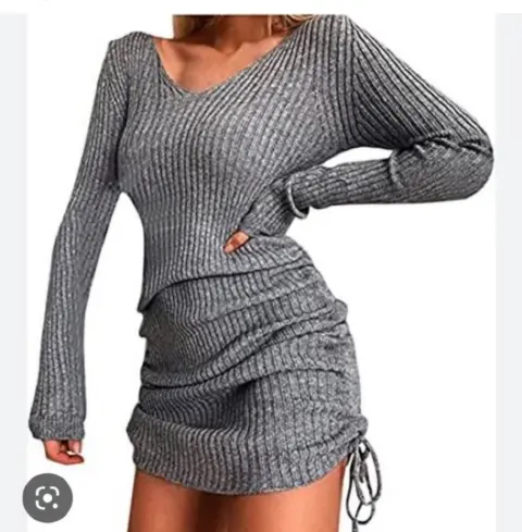 Vestido corto fruncido gris. Precioso vestido gris , ajustable (se ajusta con sus cordones de enfrente ) súper bonito la tela es calientita . Nuevo con etiqueta .. talla L