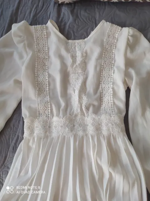 Vestido manga larga, corto, color blanco, talla L, tela fresca, excelentes condiciones, estilo vintage.