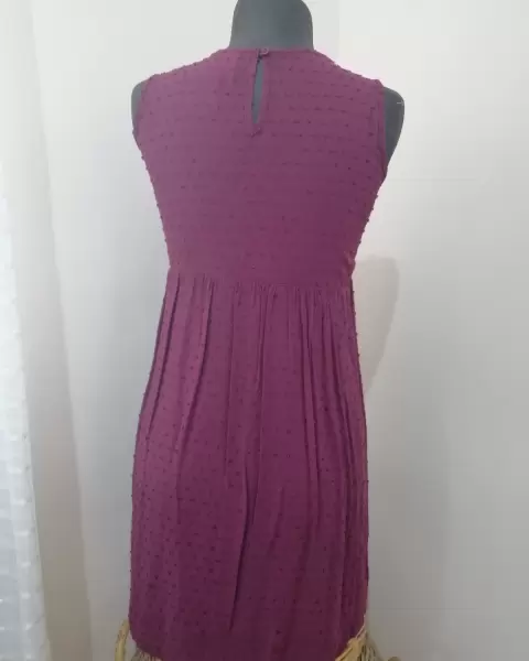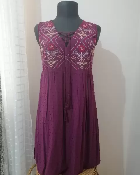Vestido corto (rodilla). Largo 86, ancho 43, escote 15 cmsCon detalles de bordado en la parte del busto y cuenta con forro.