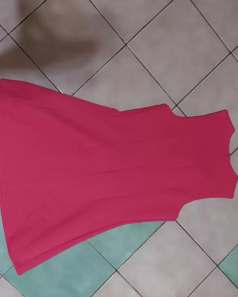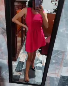 Vestido corto rosa, yo mido 1.52 y me queda arriba de la rodilla, recomendado para personas bajitas, la tela ds gruesa con bonito terminado, no se uso ni una sola vez, solo para probarmelo , pero no es mi estilo, es muy tierno