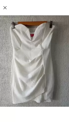 Vestido corto sexy en blanco y escote en V. Este vestido está en muy buenas condiciones, se uso apenas 1 vez. Se ve muy lindo puesto. Recomiendo a una talla M