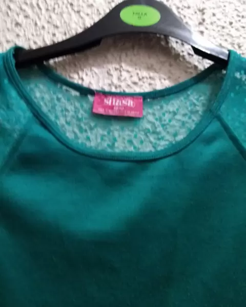 Vestido corto color verde con malla en hombros y los costados trae cierre en la parte de atrás, tela 93% poniente 3% elástico.