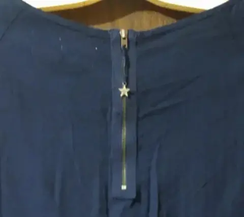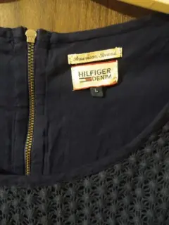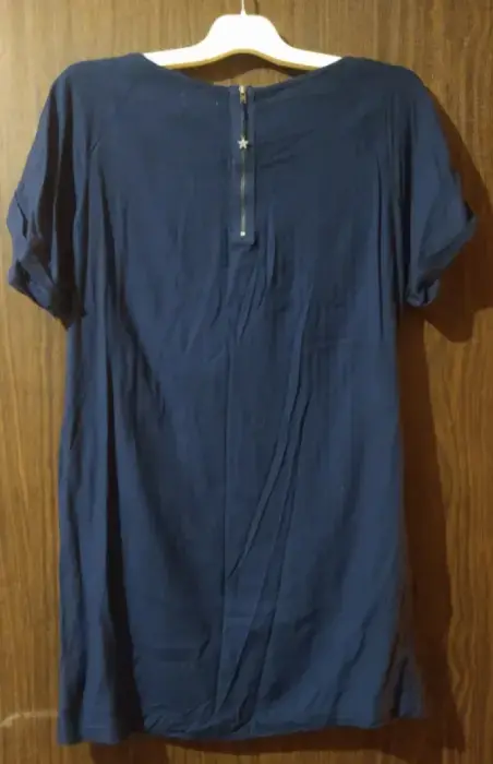 Vestido corto Tommy Hilfiger Talla LAzul marino, corte recto, parte frontal tipo tejido, ligero y con pequeñas aberturas a los lados.